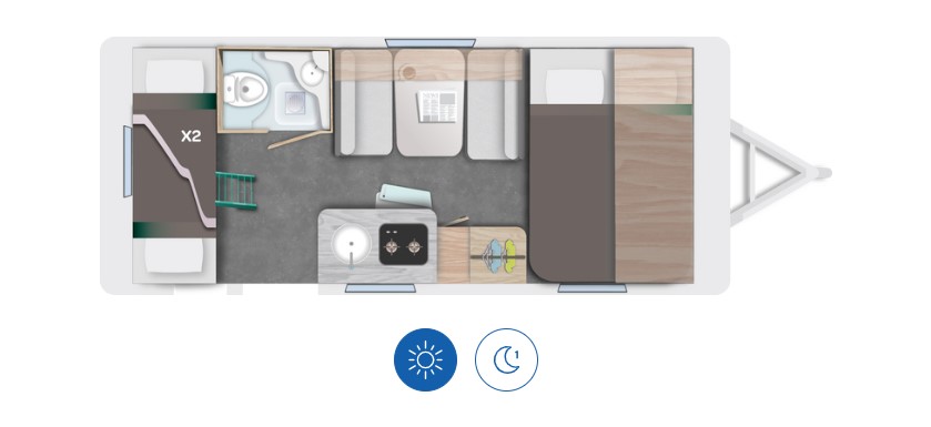 Profitez d’une caravane facile à tracter et à manœuvrer, à prix léger et pourtant dotée de tout l’équipement pour de belles vacances en couple ou en famille.