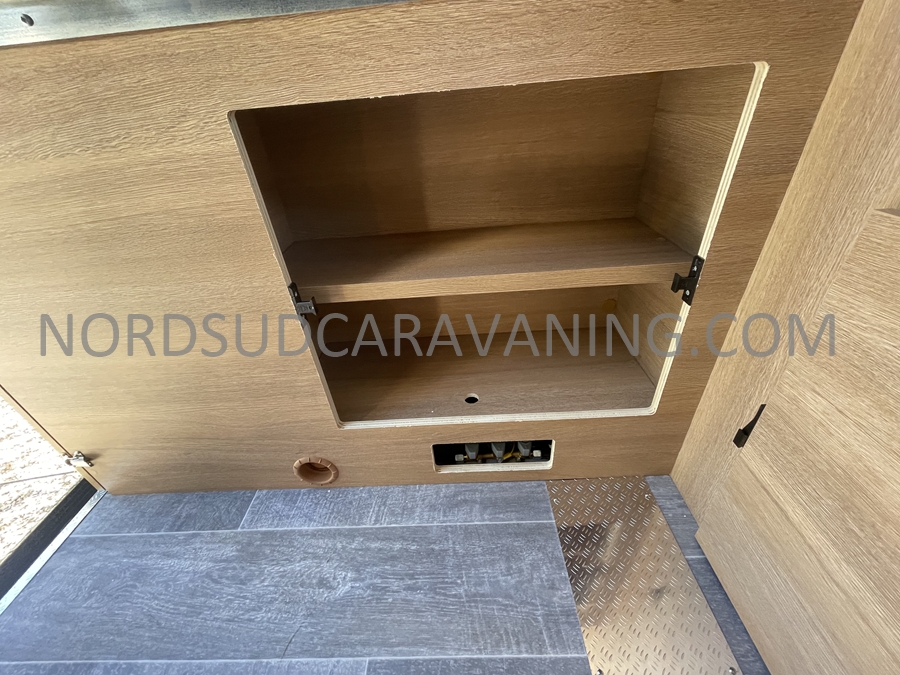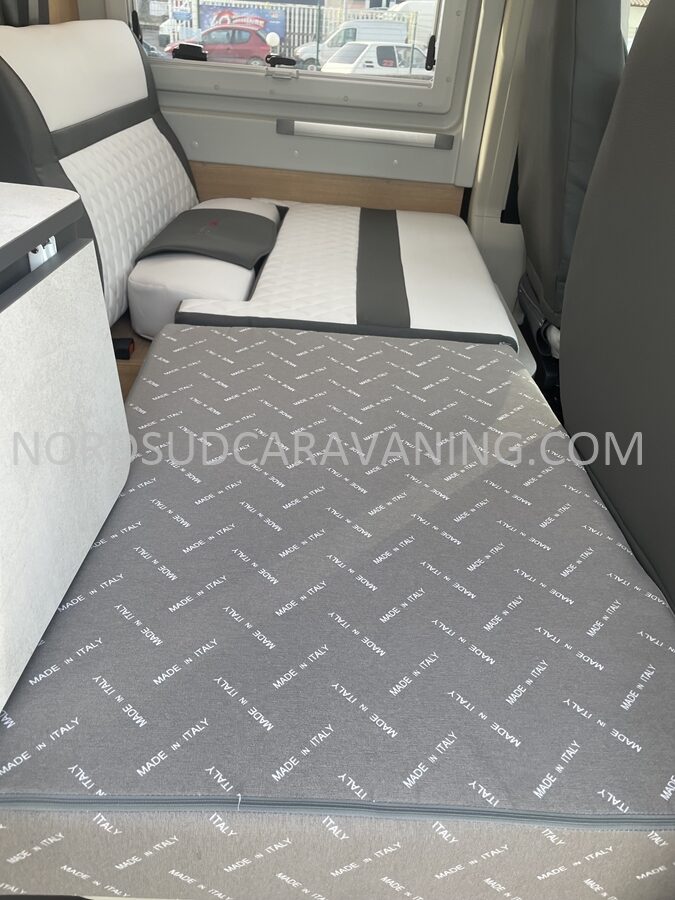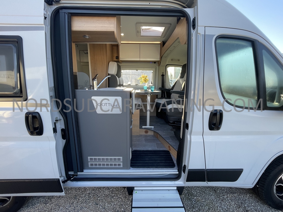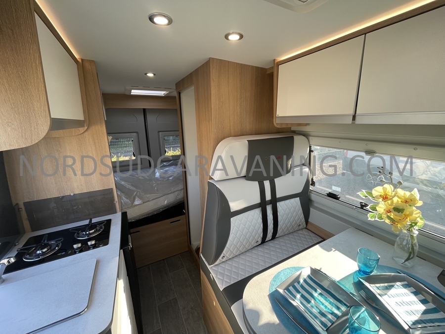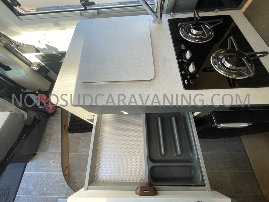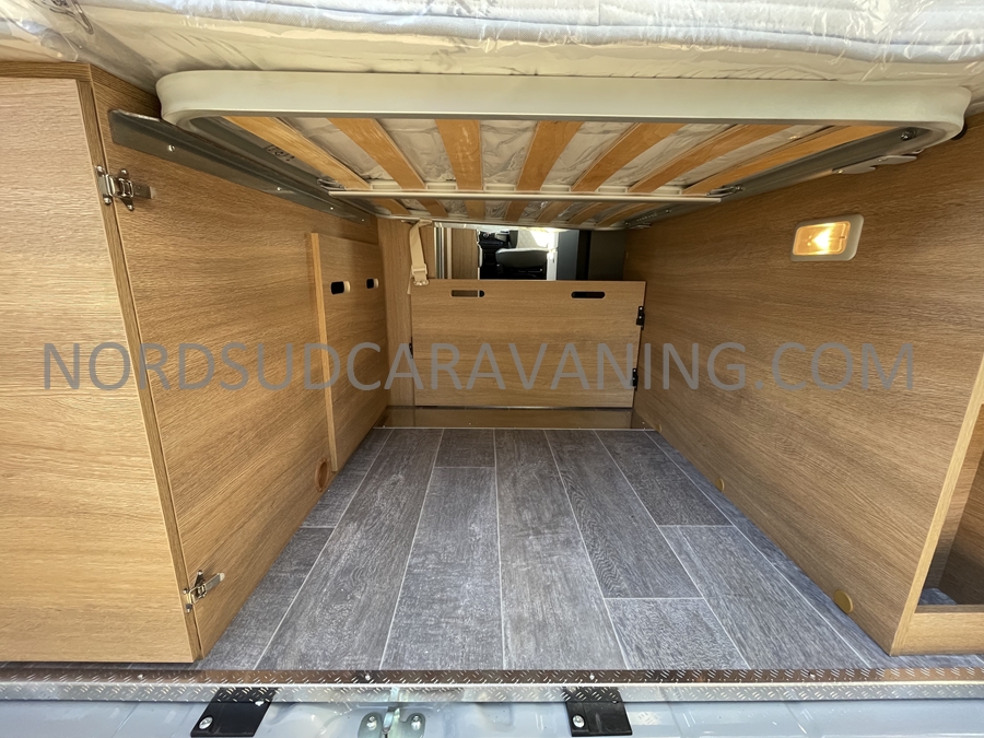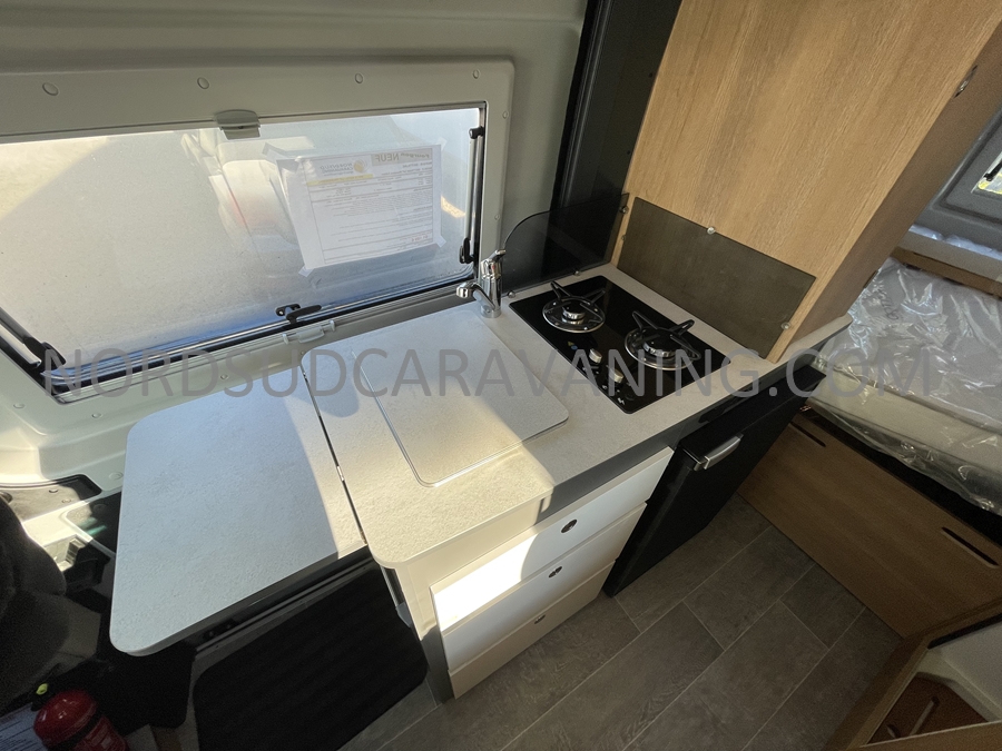 Sa dinette agréable et lumineuse se transforme en couchage d’appoint. Sa cuisine latérale pratique et fonctionnelle est équipée d’un réchaud 2 feux, évier et plan de travail rabattable. En face, une salle d’eau compacte tout-en-un qui ne manque de rien (Lavabo, miroir, WC, Douche). A l’arrière, c’est un couchage transversal confortable et agréable sur soute qui est proposé, vous permettant de ranger vos vélos, de retour de balades. Sans oublier ses nombreux rangements astucieux !
