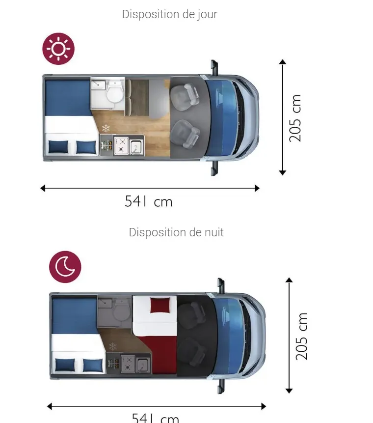 Ultra compact avec ses 5.41m de long, il est idéal pour voyager en solo ou en couple.