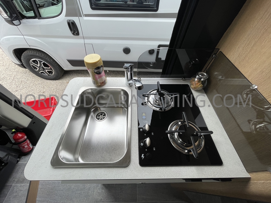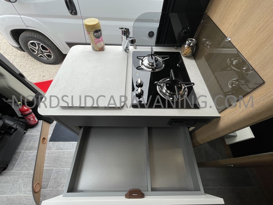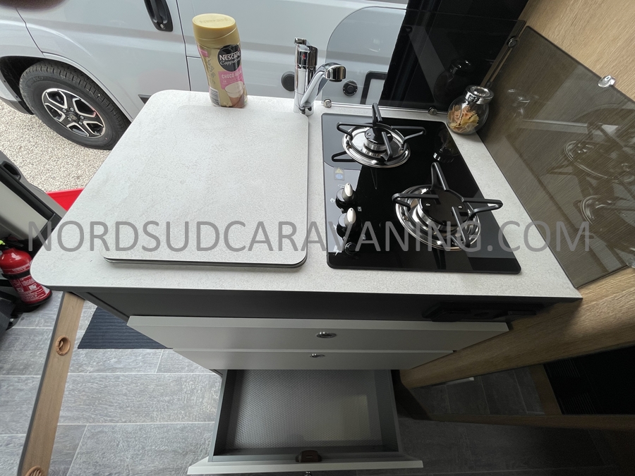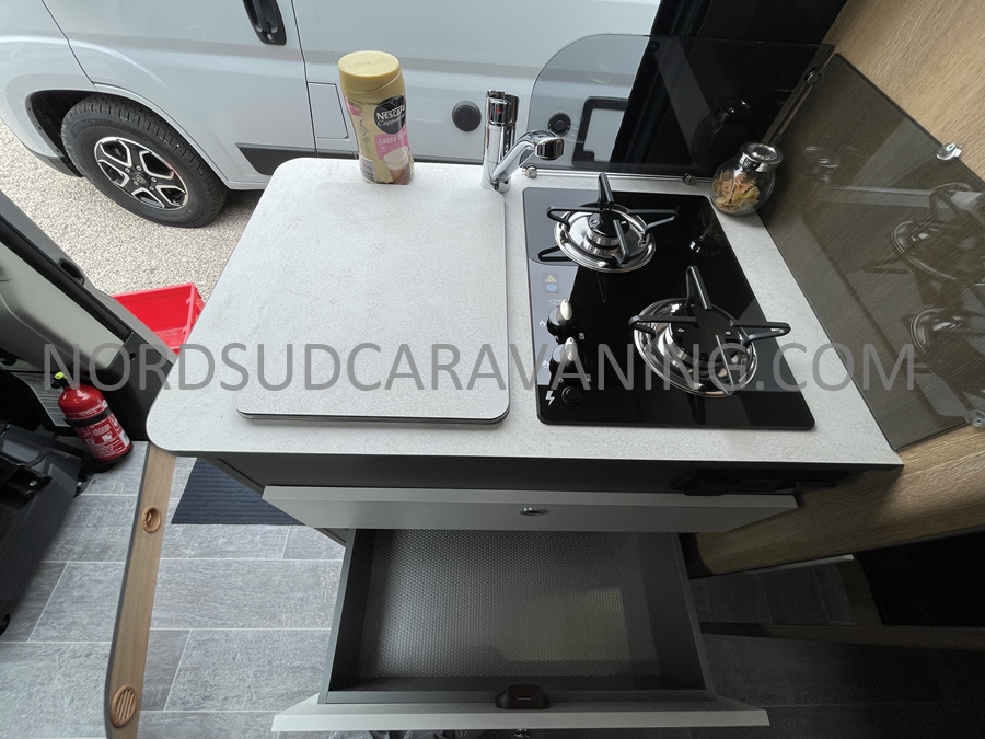 Ce fourgon aménagé vous propose dans un véhicule de 5.99 m une vraie douche séparée, un espace sanitaire et un grand frigo digne d’un camping-car dans seulement 2.05 m de large. Les espaces sont bien organisés, conçus pour deux personnes souhaitant vivre un voyage pratique et dynamique. Un van idéal pour ceux qui recherchent autonomie et flexibilité.