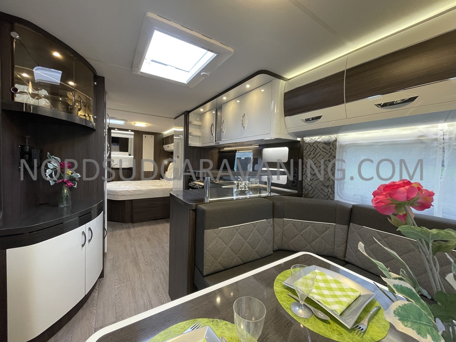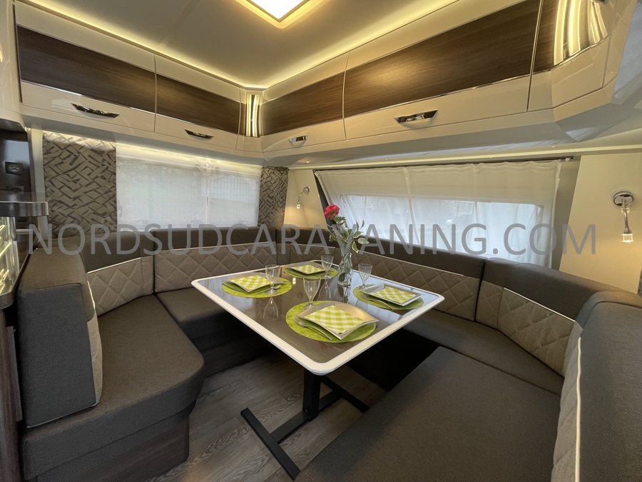 Nouveauté 2025, Caravane haut de gamme HOBBY Prestige 720 WQC, Double essieux, Spacieuse, Lit central, Maxi Salon, Douche indépendante, Tout confort.