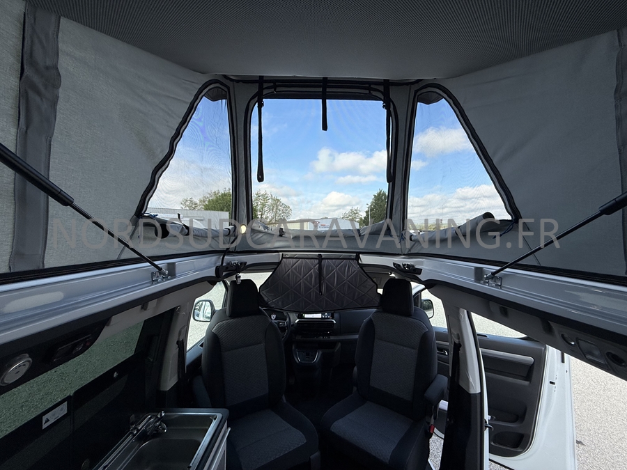Cellule Toit relevable panoramique blanc avec matelas confortCUISINE