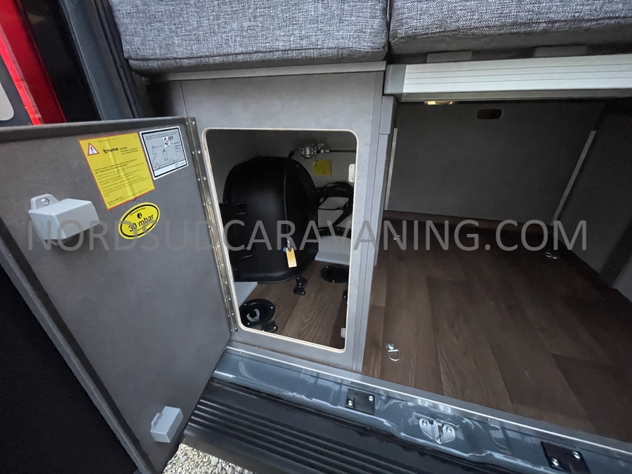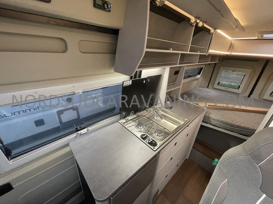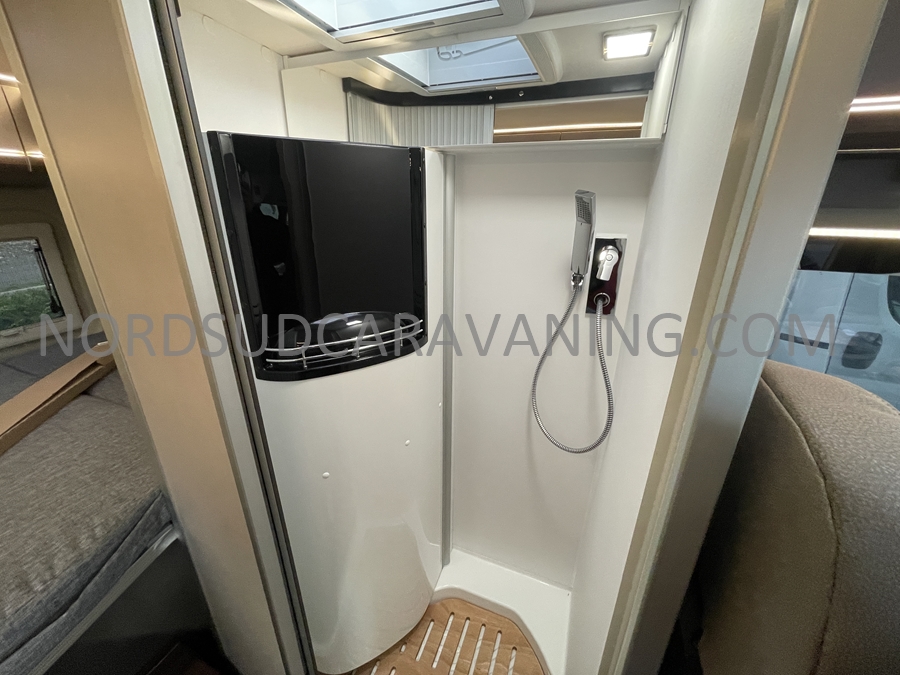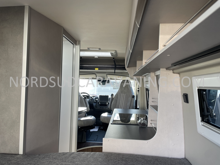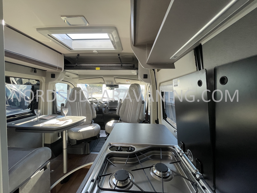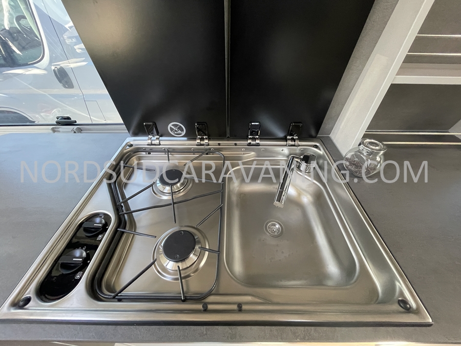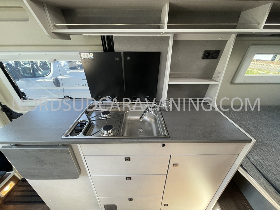 Sa dinette agréable et lumineuse pour une ambiance conviviale. Sa cuisine latérale pratique et fonctionnelle est équipée d’un réchaud 2 feux, évier et plan de travail rabattable. En face, une salle d’eau avec WC, lavabo, et une douche spacieuse. A l’arrière, c’est un lit transversal, pour des nuits confortables et agréables. Sans oublier ses nombreux rangements astucieux !