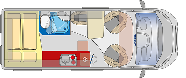 Ultra compact avec ses 5.99m de long, il est idéal pour voyager en solo ou en couple.