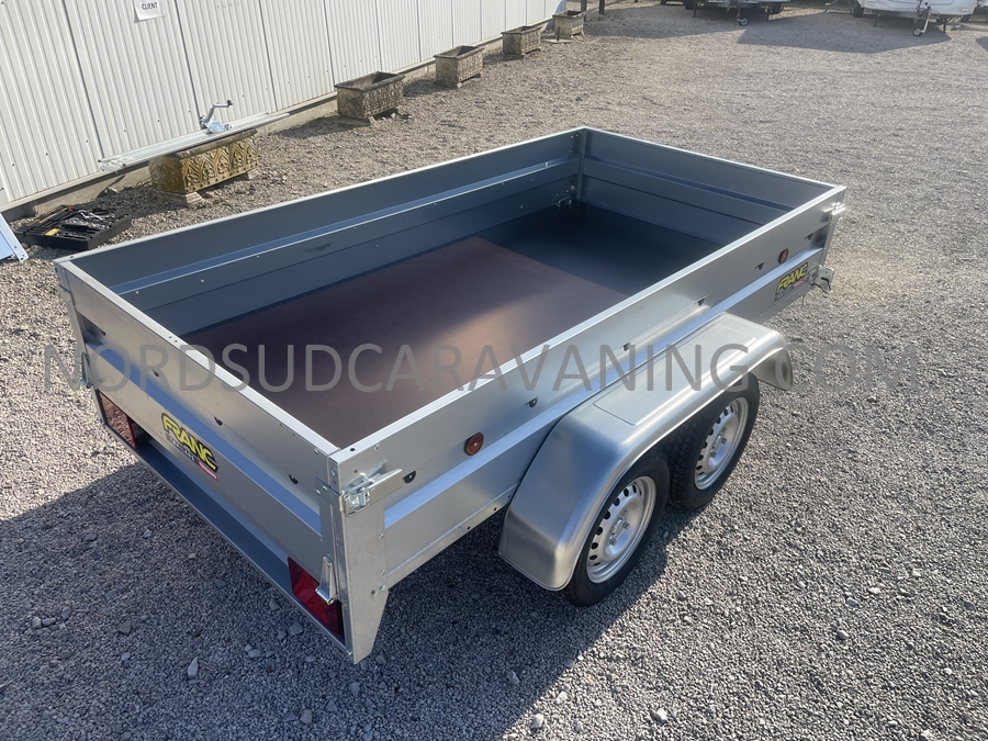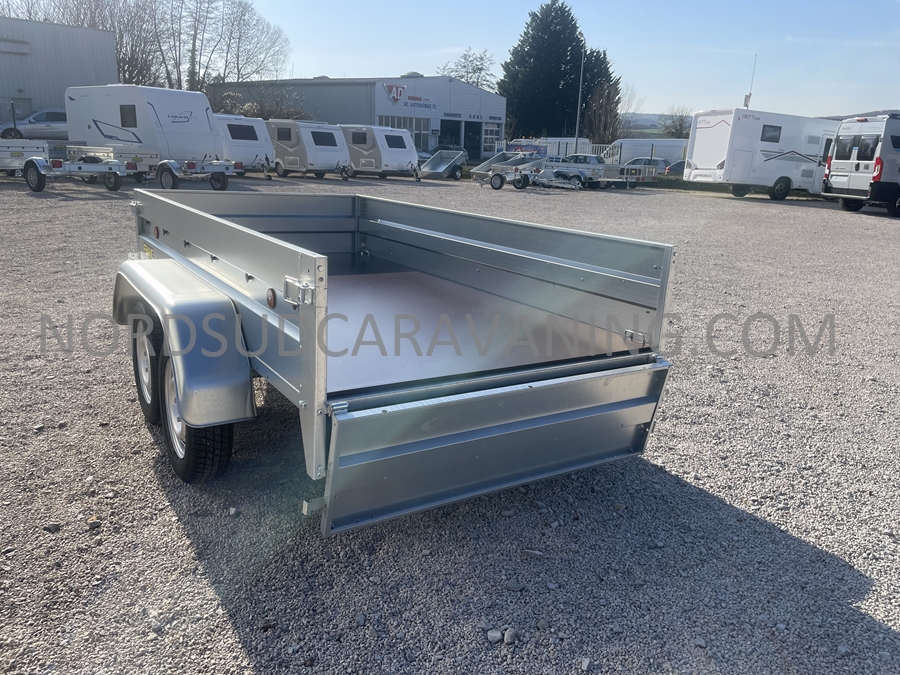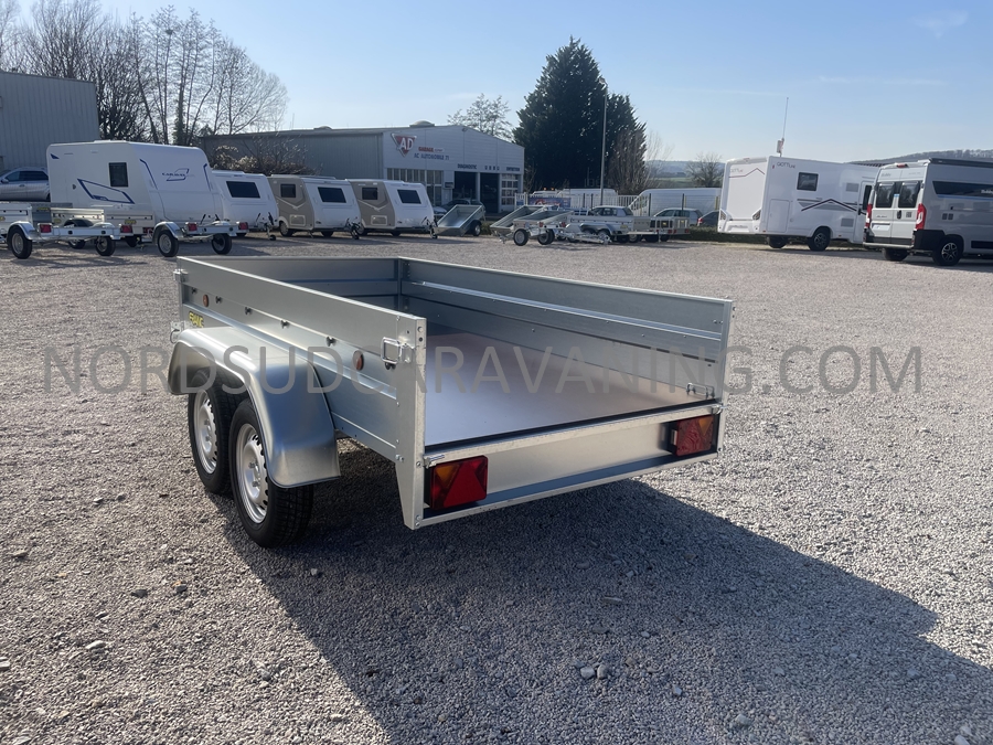 Découvrez cette remorque double essieu, en acier galvanisé et Fond bois, légère et polyvalente, idéale pour les départs en vacances, le jardinage notamment le transport des déchets verts, les bricolages et travaux en tout genre.