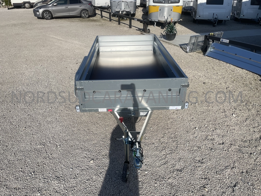 Cette remorque est livrée avec une Flèche V pour une meilleure rigidité et stabilité. Elle peut être facilement stockée dans une position verticale pour permettent d'économiser de l'espace.