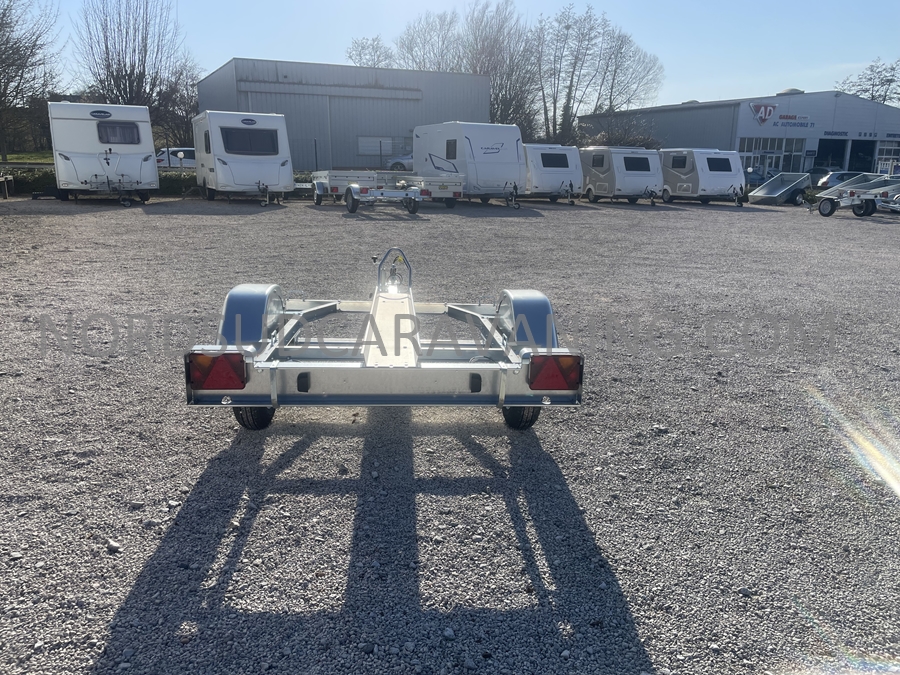 Conçue avec un châssis galvanisé et un rail, elle assure un chargement et un maintien optimal du deux-roues. Son système de fixation garantit une stabilité maximale pendant le transport.